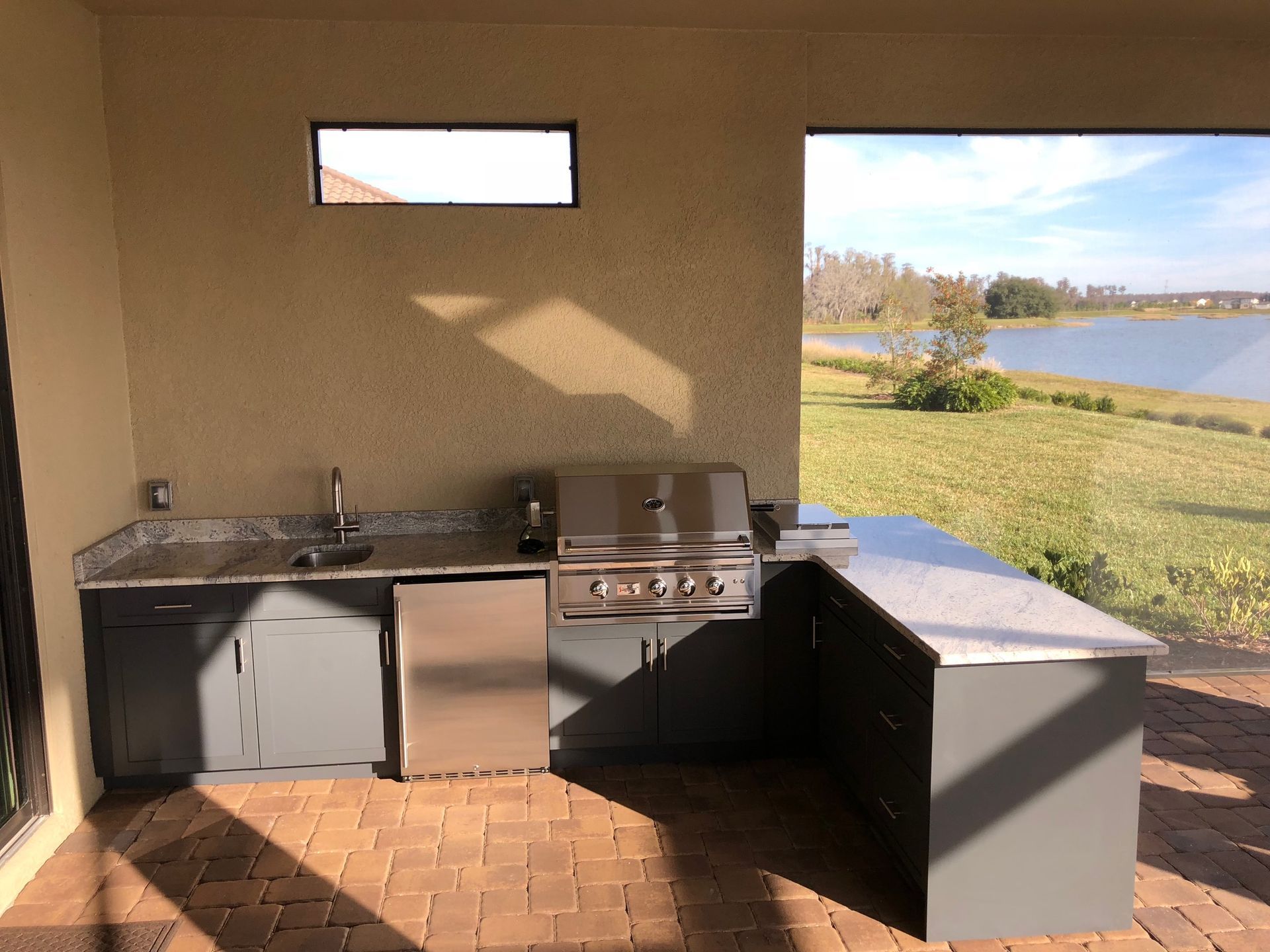 Gray L-Shaped Outdoor Kitchen