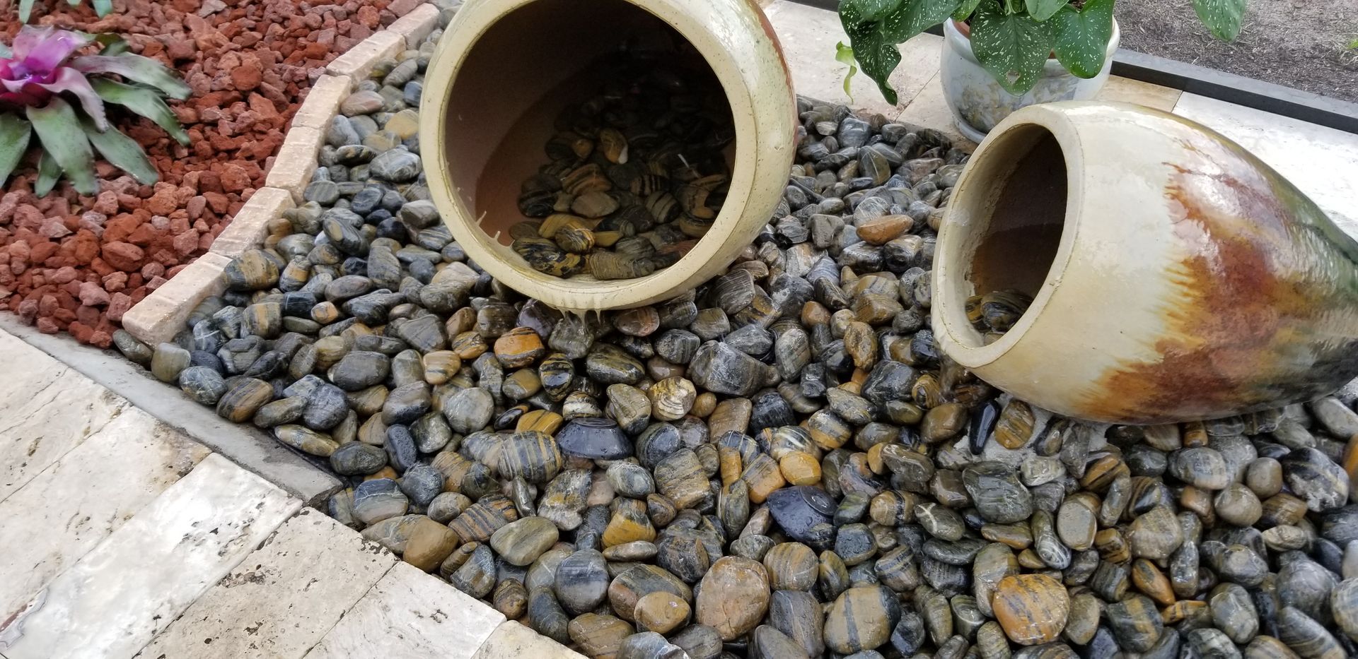 This unique outdoor water feature brings new life to this lanai. This customer has an expert eye for design, and brought nature into their screened enclosure in the most beautiful way. The gentle flow of water will create a tranquil ambiance in the space. This custom plant bed and water feature combination is a stunning focal point for this home.