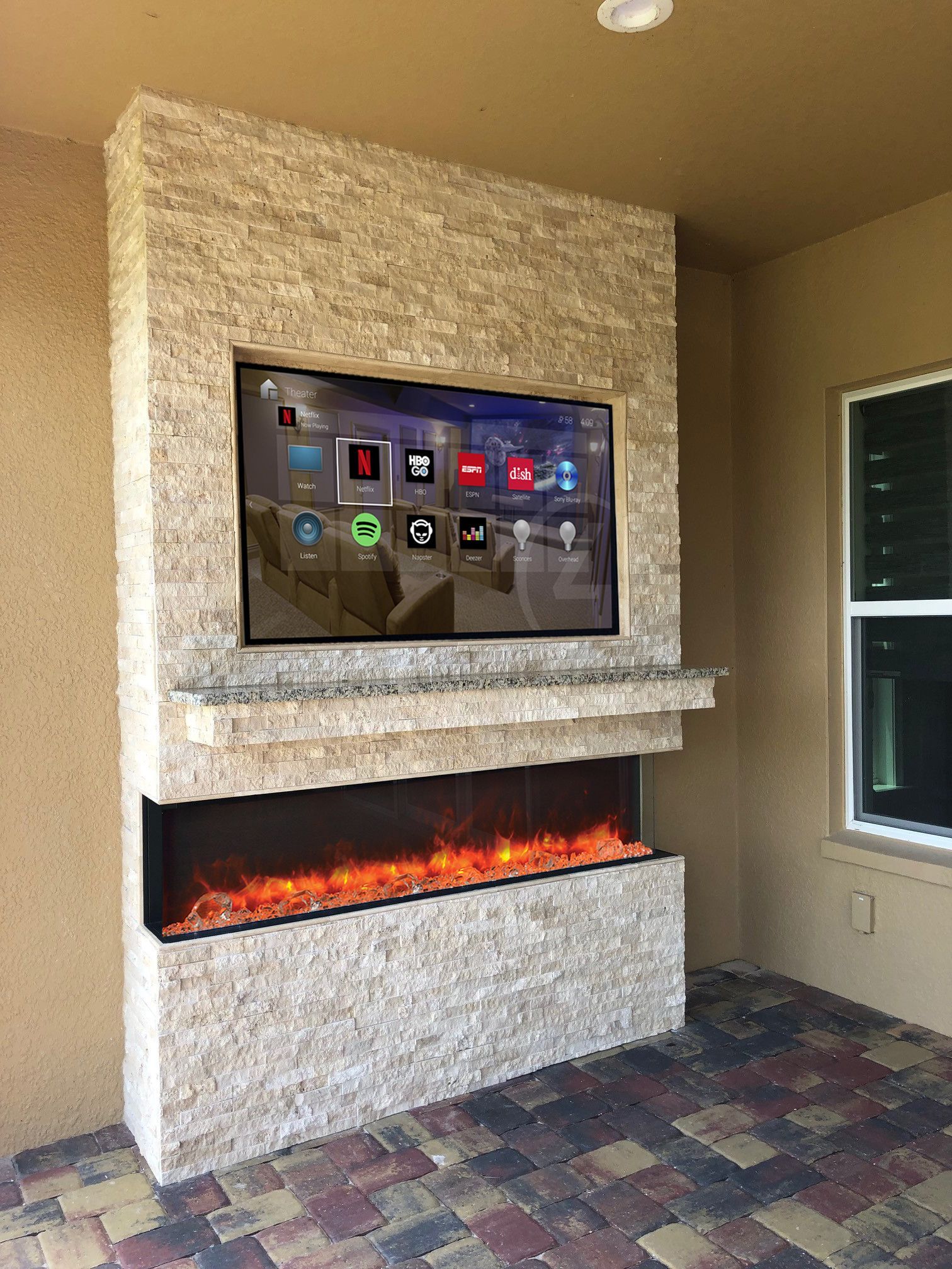 This combo is one of our most popular featured items. Enjoy the big game or an outdoor movie night with the kids on an Outdoor TV. Enjoy the dancing flames of a gas or electric fire feature, all seamlessly nested into a stunning stone structure. This combo will certainly become the focal point of your outdoor space.