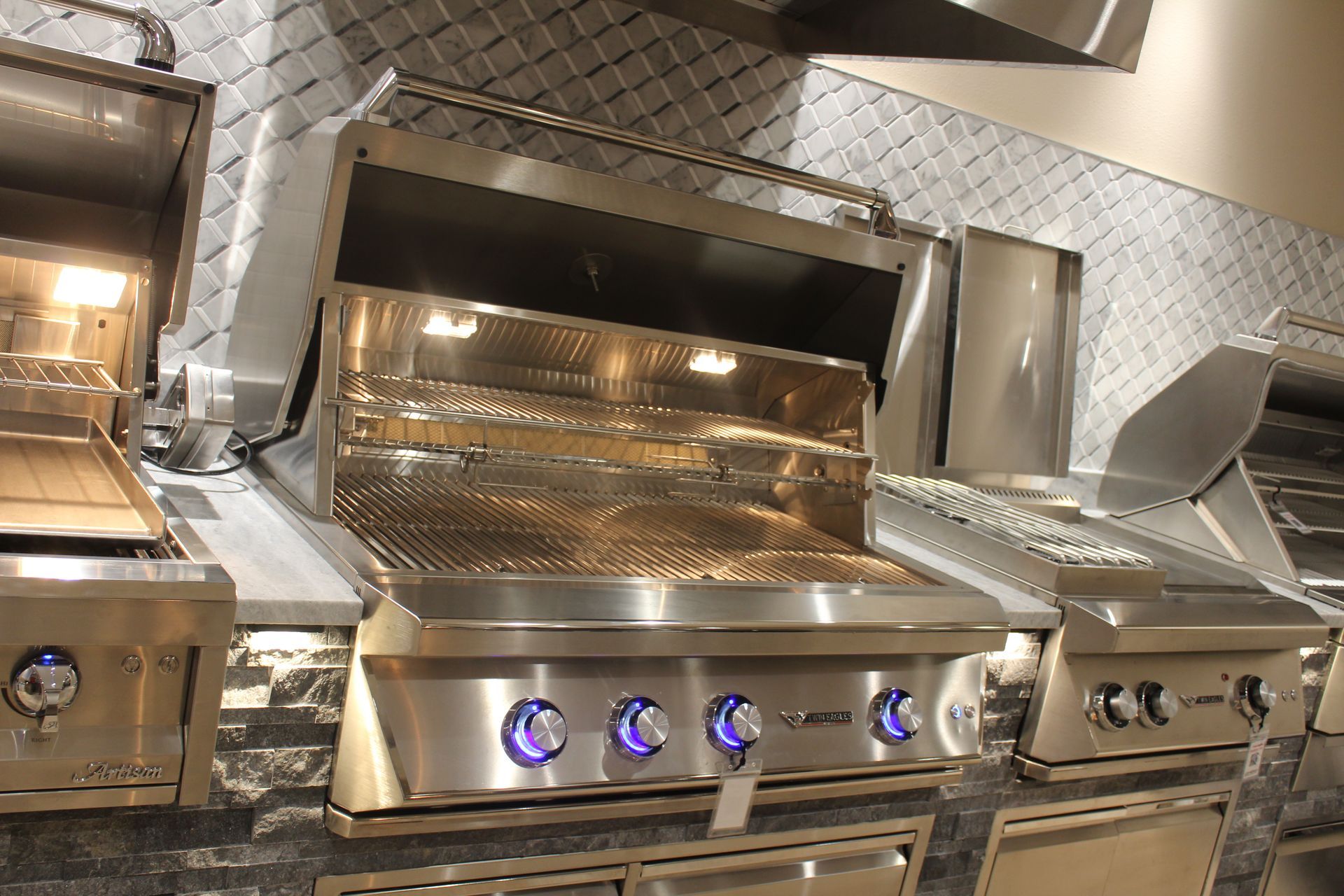 Take a tour of our showroom, featuring numerous appliances, as well as custom outdoor kitchen cabinetry and countertop options. Speak with an expert designer as you explore your home audio-video and security options, and take a seat in our custom home theater.